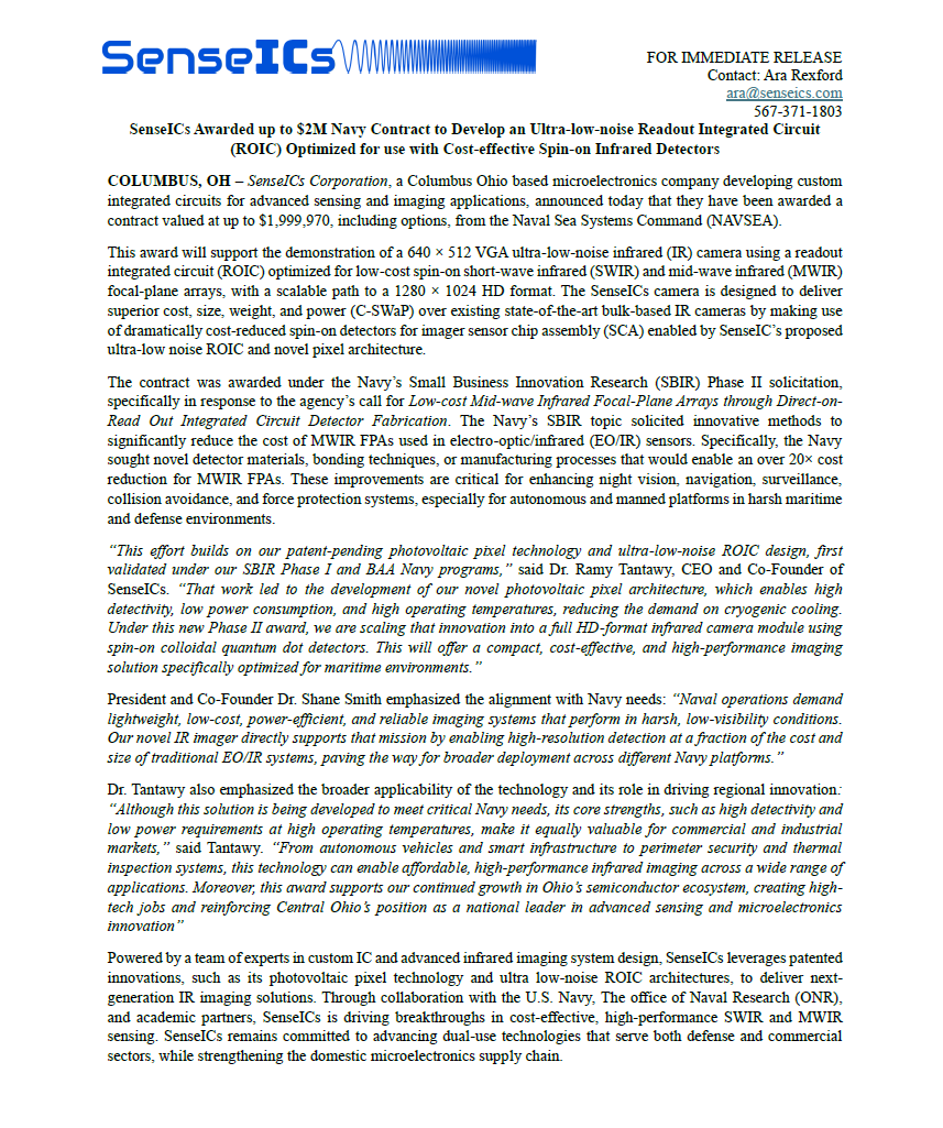 hashtagNavySBIR hashtagDefenseTech hashtagInfraredImaging hashtagMWIR hashtagEOIR hashtagSemiconductors hashtagMicroelectronics hashtagOhioInnovation hashtagDualUse hashtagSenseICs hashtagThermalImaging hashtagNationalSecurity
